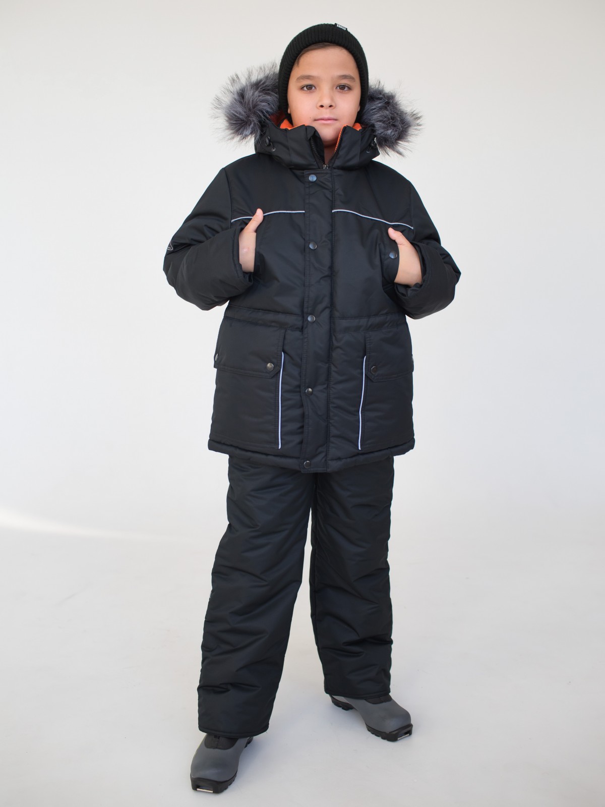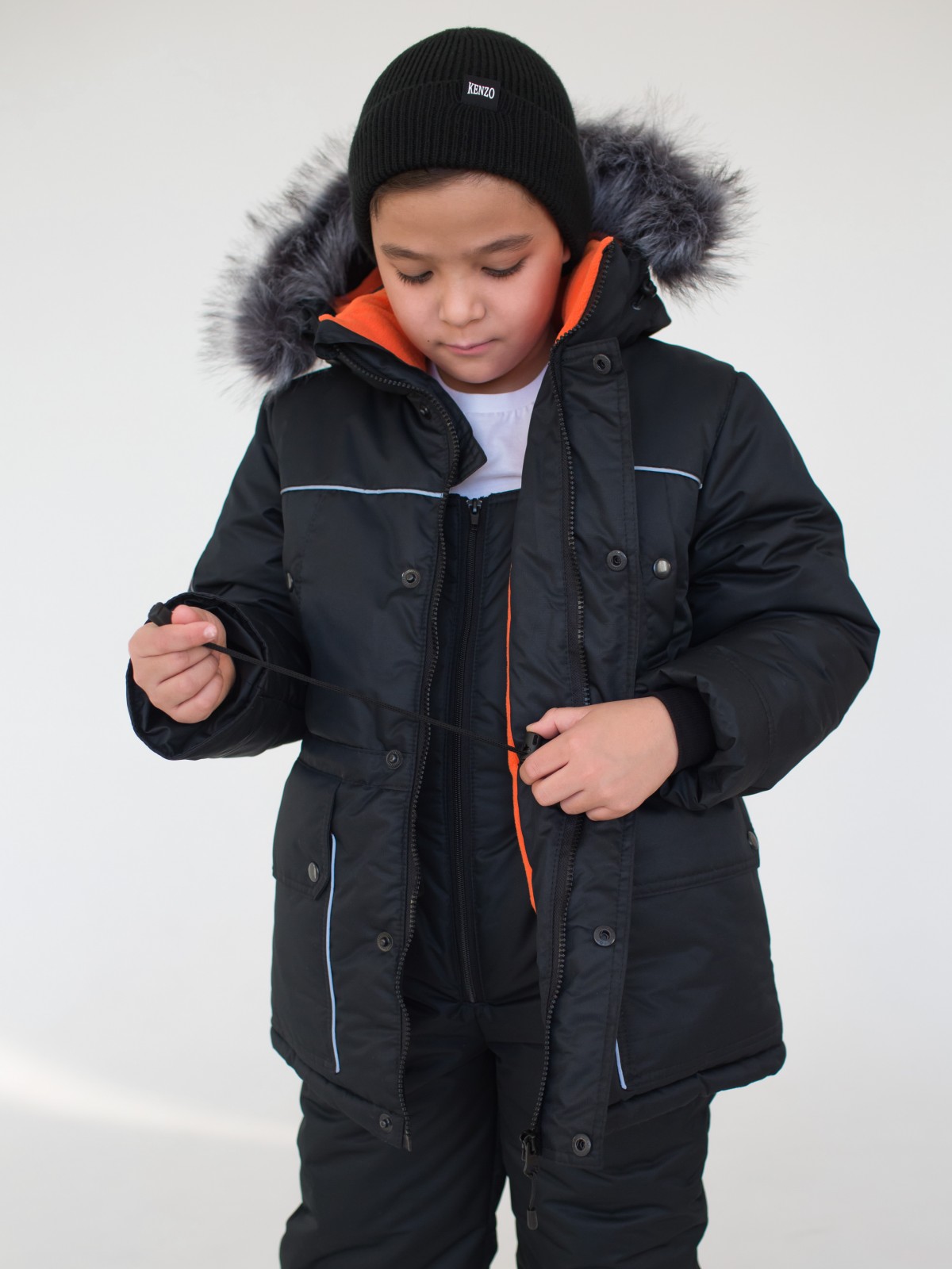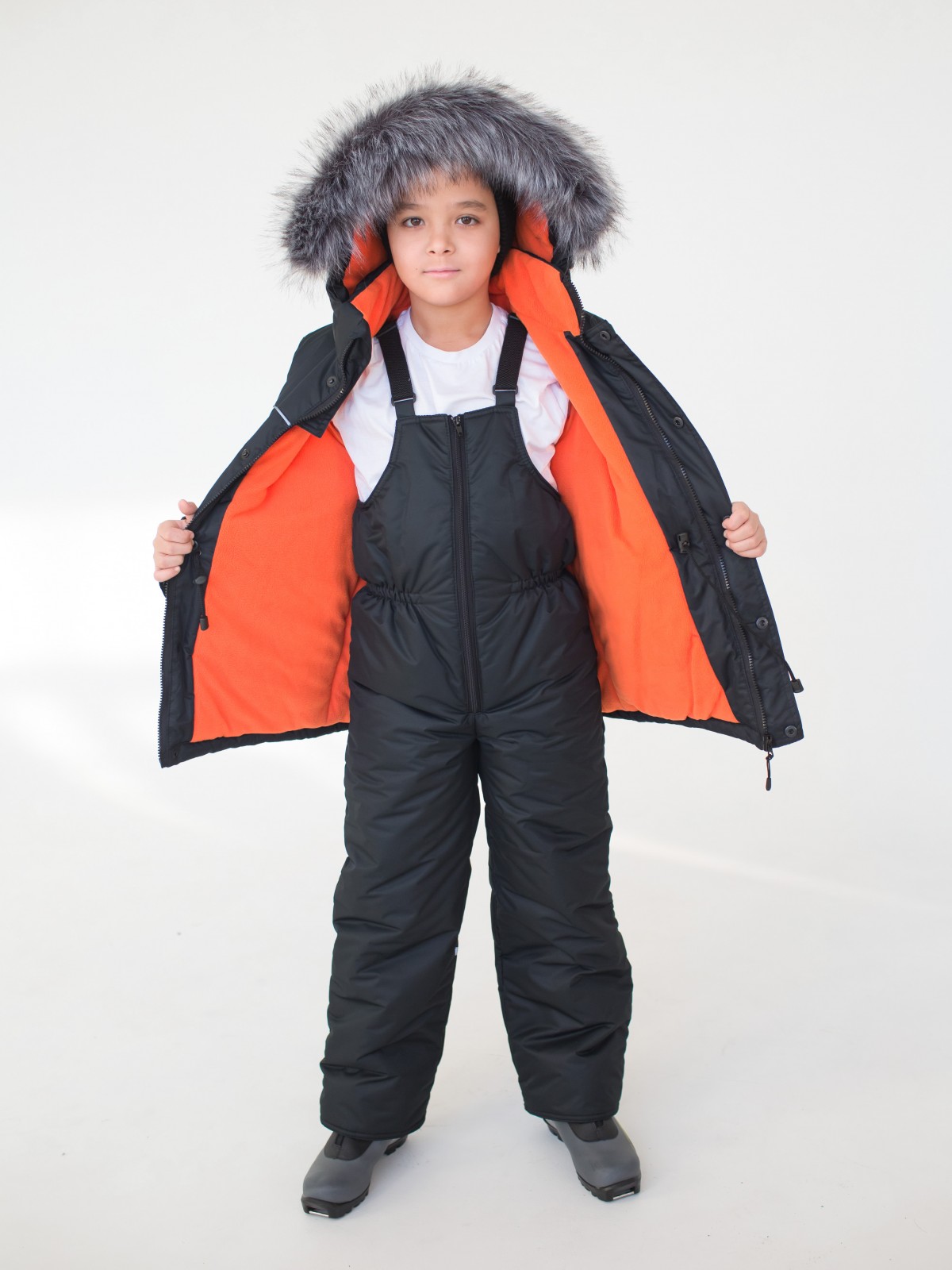 Зимний костюм, состоящий из удлиненной куртки и полукомбинезона – стильный, теплый и универсальный вариант верхней одежды для мальчиков от 2 до 7 лет.. В костюме предусмотрены подвороты рукавов и штанин до 5-6 см, что актуально для тех, кто рассматривает покупку костюма более чем на 1 сезон. Дополнительные характеристики зимнего костюма: ветрозащитная планка под молнией; кулиска на талии; трикотажные манжеты внутри рукавов; плотная резинка внизу штанин; мех искусственный (съёмный, гипоаллергенный); съемный капюшон; светоотражающие элементы.