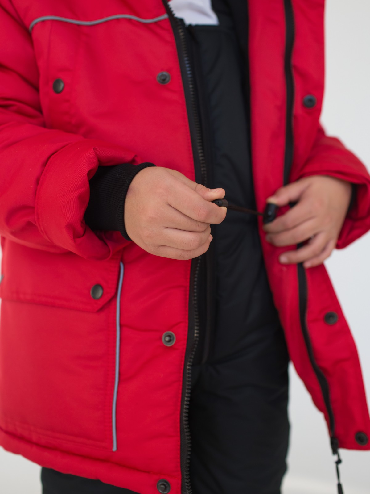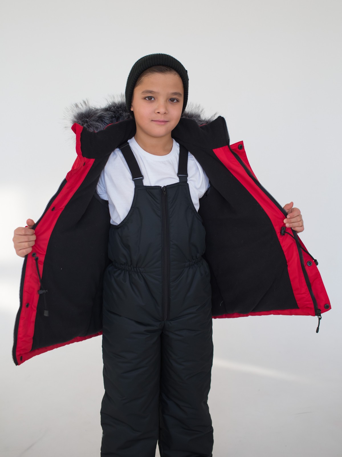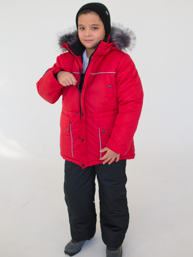 Зимний костюм, состоящий из удлиненной куртки и полукомбинезона – стильный, теплый и универсальный вариант верхней одежды для мальчиков от 2 до 7 лет.. В костюме предусмотрены подвороты рукавов и штанин до 5-6 см, что актуально для тех, кто рассматривает покупку костюма более чем на 1 сезон. Дополнительные характеристики зимнего костюма: ветрозащитная планка под молнией; кулиска на талии; трикотажные манжеты внутри рукавов; плотная резинка внизу штанин; мех искусственный (съёмный, гипоаллергенный); съемный капюшон; светоотражающие элементы.