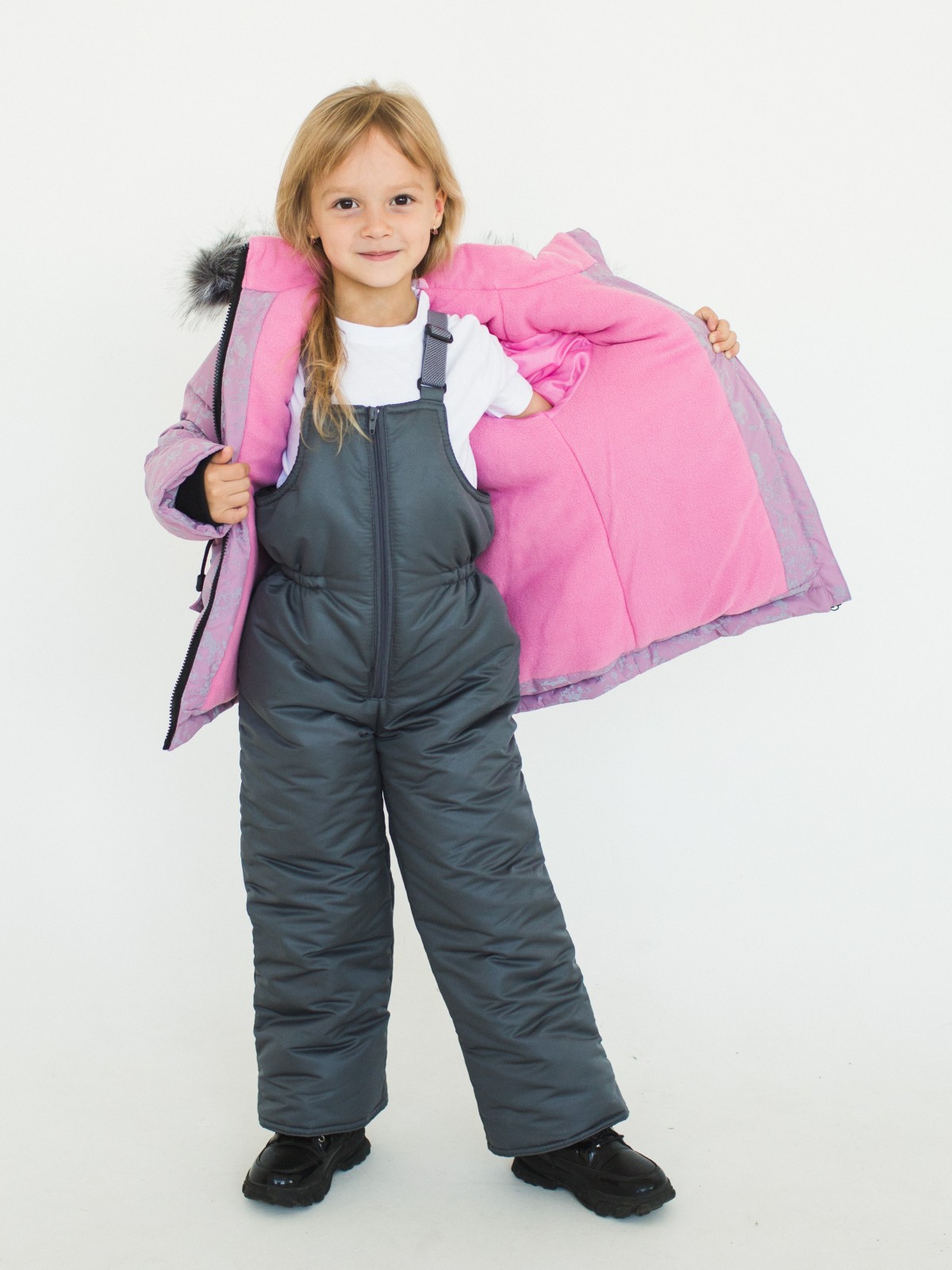 Зимний костюм, состоящий из удлиненной куртки-парки и полукомбинезона – стильный, теплый и универсальный вариант верхней одежды для девочек от 2 до 7 лет. В костюме предусмотрены подвороты рукавов и штанин до 5-6 см, что актуально для тех, кто рассматривает покупку костюма более чем на 1 сезон. Дополнительные характеристики зимнего костюма: ветрозащитная планка под молнией; кулиска на талии; трикотажные манжеты внутри рукавов; плотная резинка внизу штанин; мех искусственный (съёмный, гипоаллергенный); съемный капюшон; светоотражающие элементы.